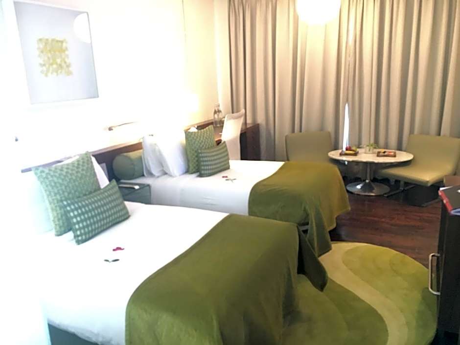 This large air-conditioned room comes with complimentary WiFi for one device, DVD player, tea/coffee maker and a mini-bar. The attached bathroom comes with a Japanese style bathtub, flat-screen TV and rainshower.